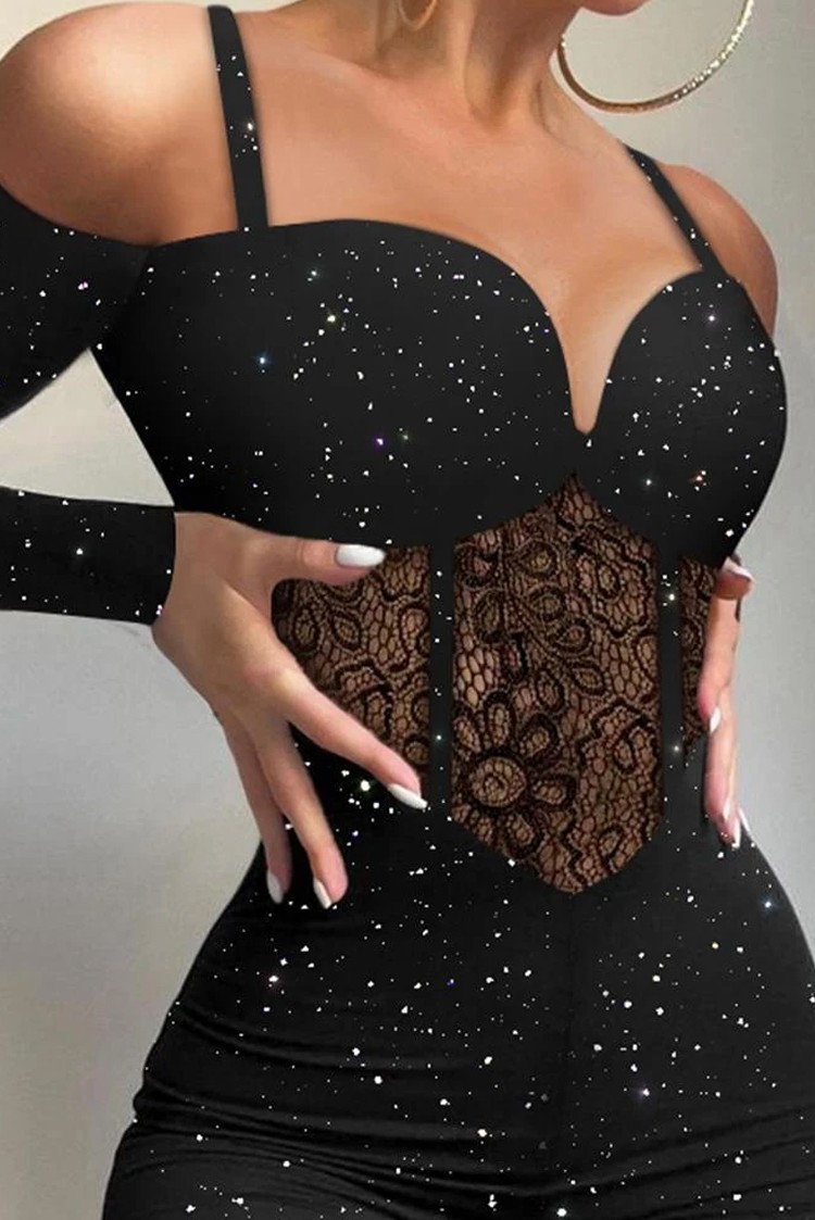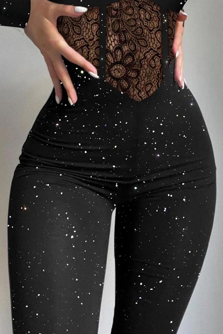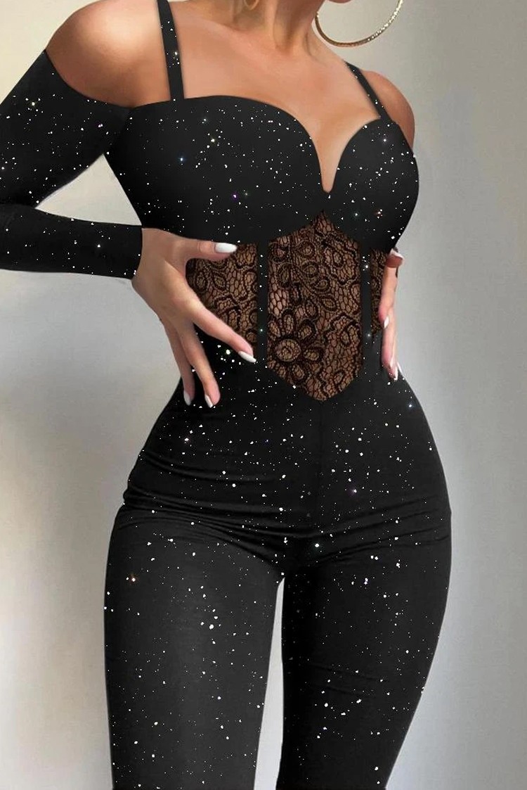 - Stwórz imponujący, atrakcyjny wygląd dzięki temu seksownemu kombinezonowi z brokatowym wzorem!
