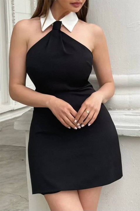 - Model bez rękawów, z klasycznym kołnierzykiem w kontrastowym kolorze i modną długością za kolano.