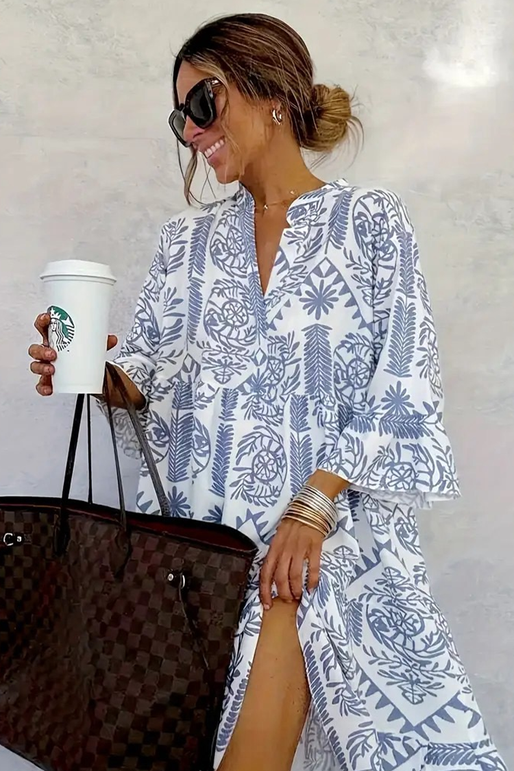 - Model ma dekolt w serek, rękawy 7/8 i wygodny krój odpowiedni do każdej sylwetki.