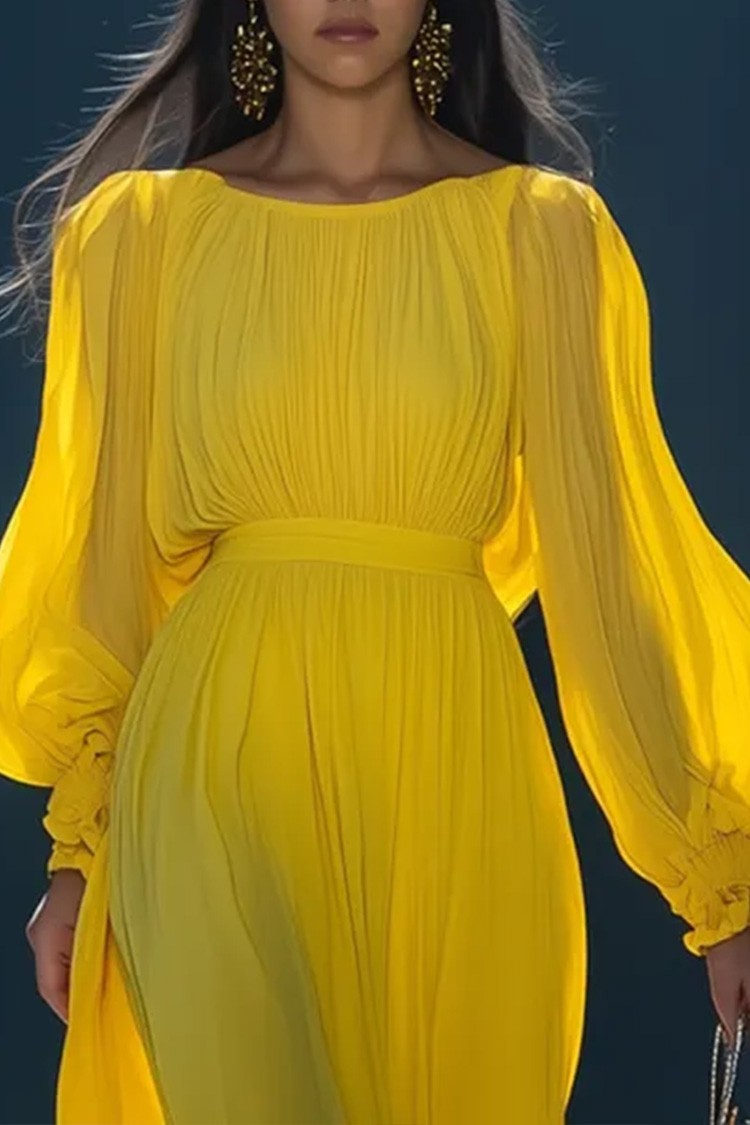 - Wysokiej jakości sukienka z szyfonu o dopasowanym kroju i długimi rękawami.