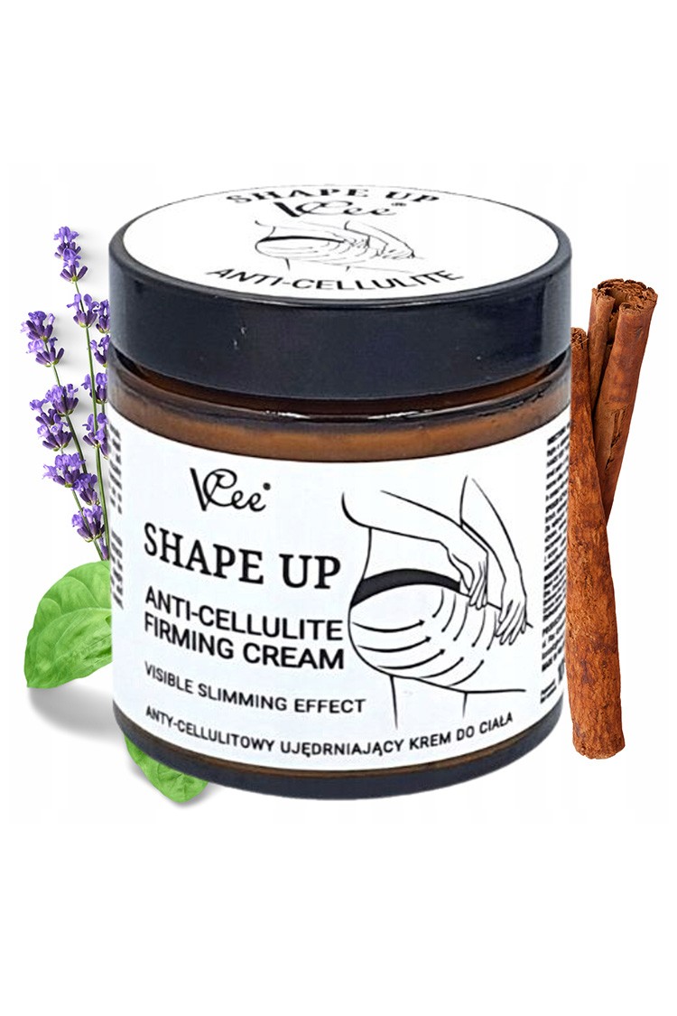 Krem antycellulitowy Vcee Shape Up to skuteczny produkt, który stosuje się miejscowo na problematyczne obszary, bezpośrednio oddziałując na podskórne złogi tłuszczu. Dzięki zawartości naturalnych składników roślinnych, takich jak cytryna, cynamon, rozmaryn i kamfora, krem pomaga poprawić mikrokrążenie krwi i zmniejsza widoczność skóry przypominającej „skórkę pomarańczową”. Ponadto dodatek guarany przyczynia się do poprawy napięcia i elastyczności skóry, dzięki czemu staje się ona jędrna, gładka i zdrowa.