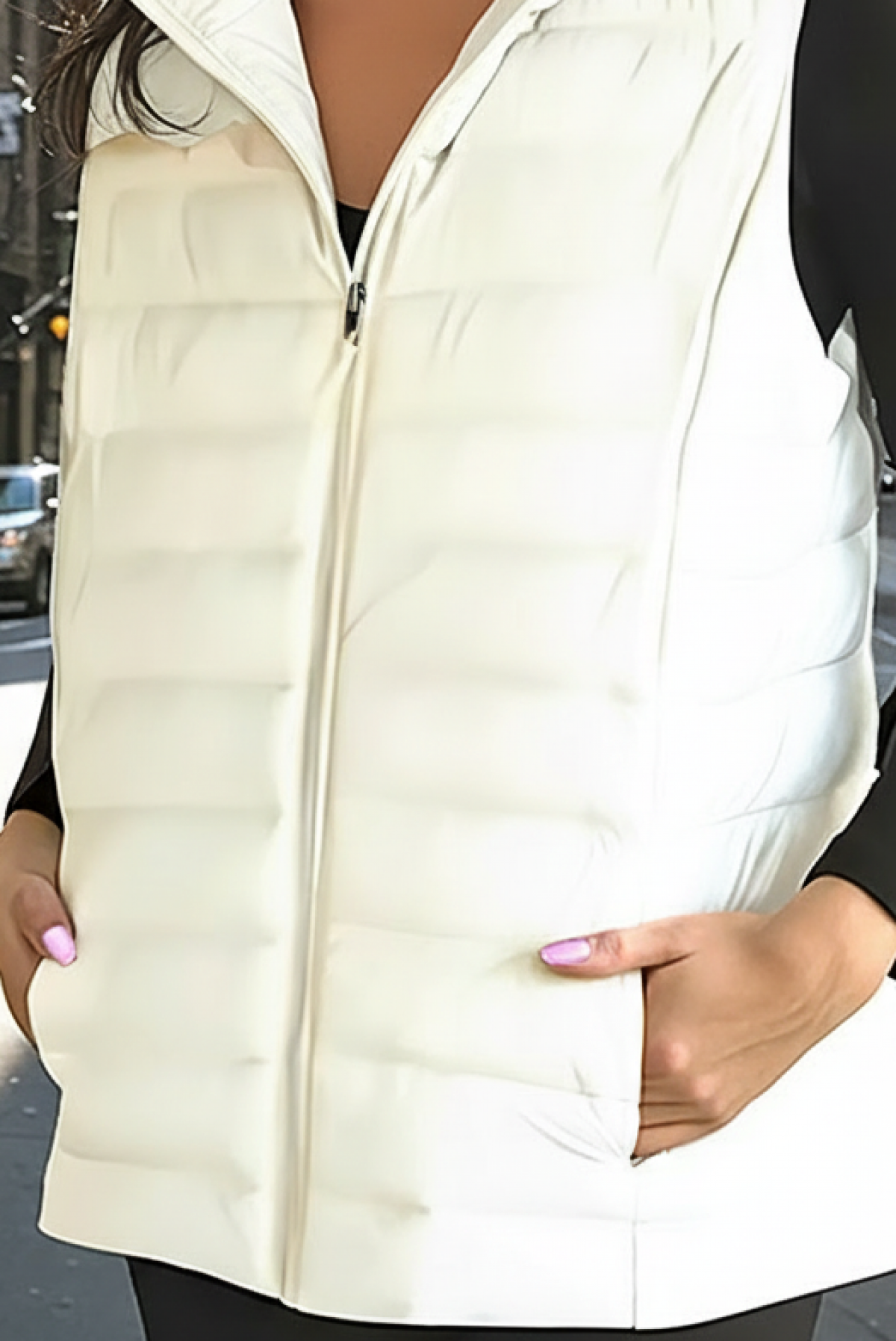 - Model, którego nie może zabraknąć w Twojej garderobie –nowoczesna kamizelka w jednolitym kolorze.