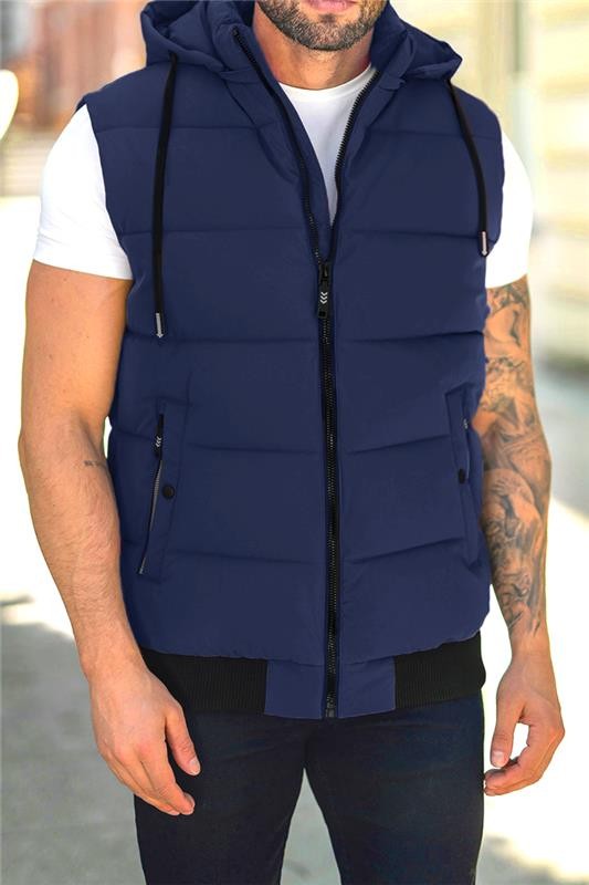 - Sportowo-codzienna męska kamizelka w kolorze czarnym z pikowanym wzorem i poziomymi szwami.