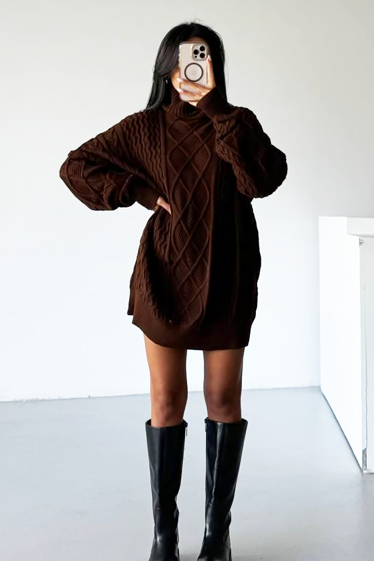 - Wybierz tę krótką, dzianinową sukienkę, idealną na co dzień.