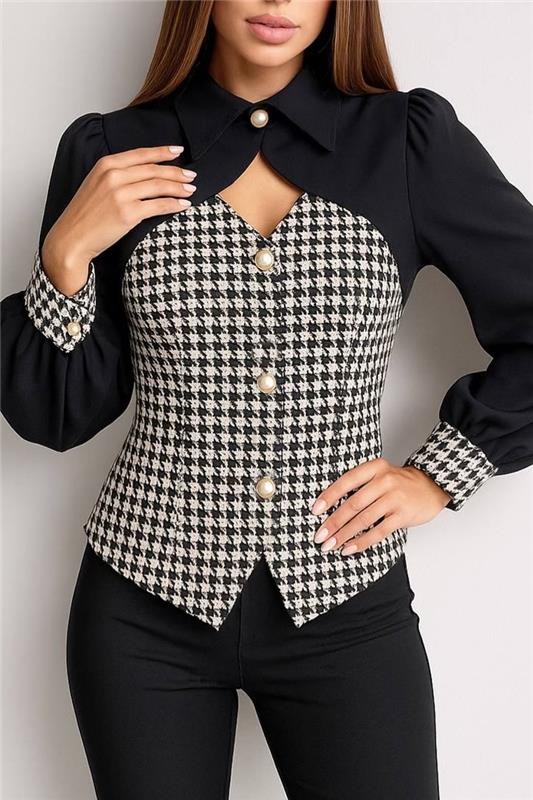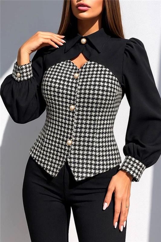 - Koszula ma długie rękawy i zapinana jest na efektowne guziki na całej długości.