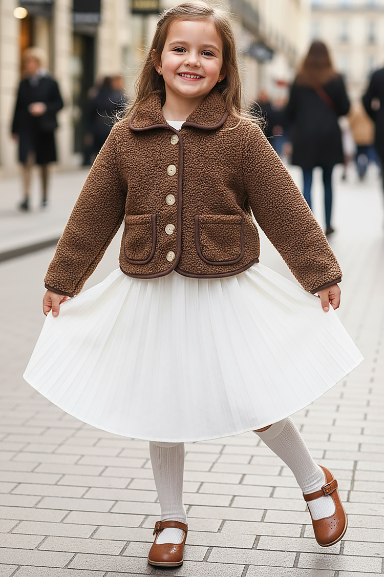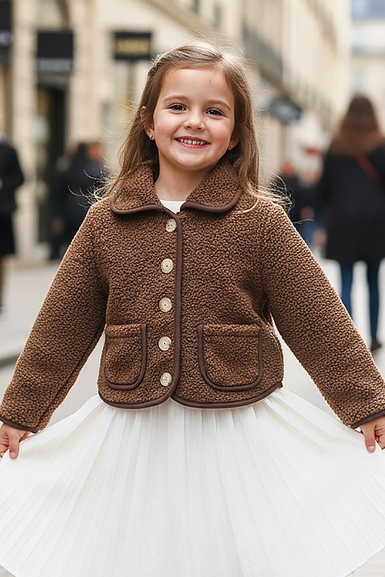 - Praktyczna kurtka dziecięca dla dziewczynek o modnym kroju, z wygodnymi kieszeniami i kołnierzykiem.