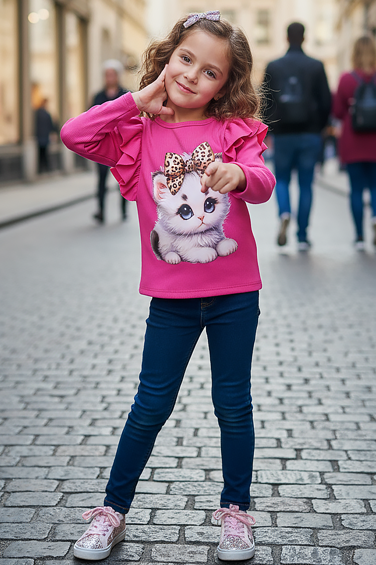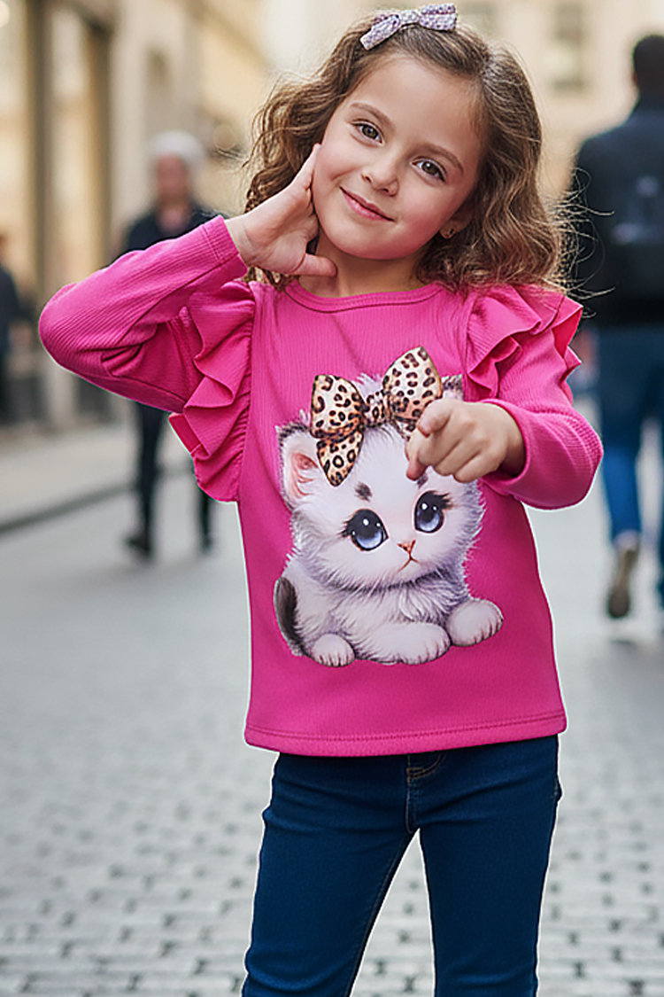 - Nowoczesna bluzka dla dziewczynek z atrakcyjnym i modnym nadrukiem, idealna na co dzień.
