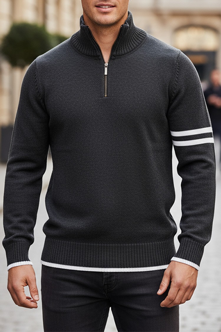 - Nowoczesny męski sweter z kołnierzykiem i zamkiem błyskawicznym, idealny jako dodatek do codziennej stylizacji.