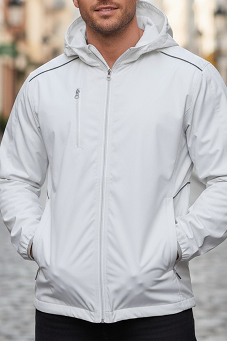 - Nowoczesna męska kurtka o sportowym stylu, odpowiednia na okres przejściowy.
