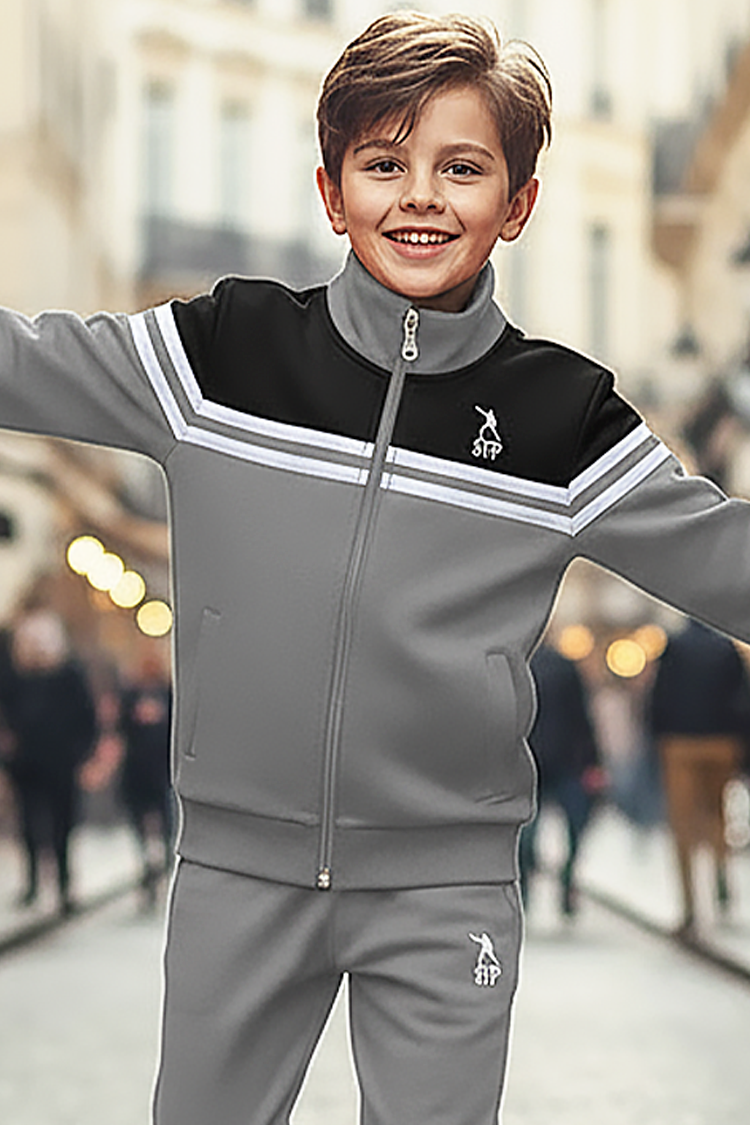 - Dwuczęściowy komplet dziecięcy, składający się z bluzy i spodni – idealny wybór na co dzień i do uprawiania sportu.