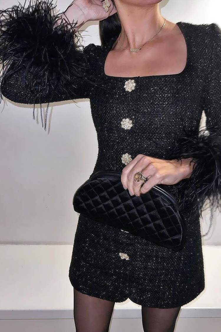 - Sukienka ma dopasowany krój, długie rękawy i fason, który zrobi wrażenie na innych.