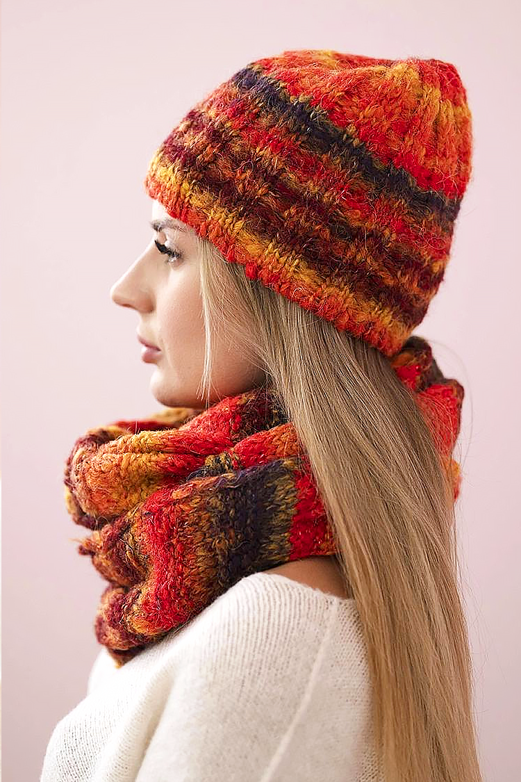 - Uzupełnij swoją stylizację o dwuczęściowy komplet – czapkę i szalik o ciekawym wzorze.
