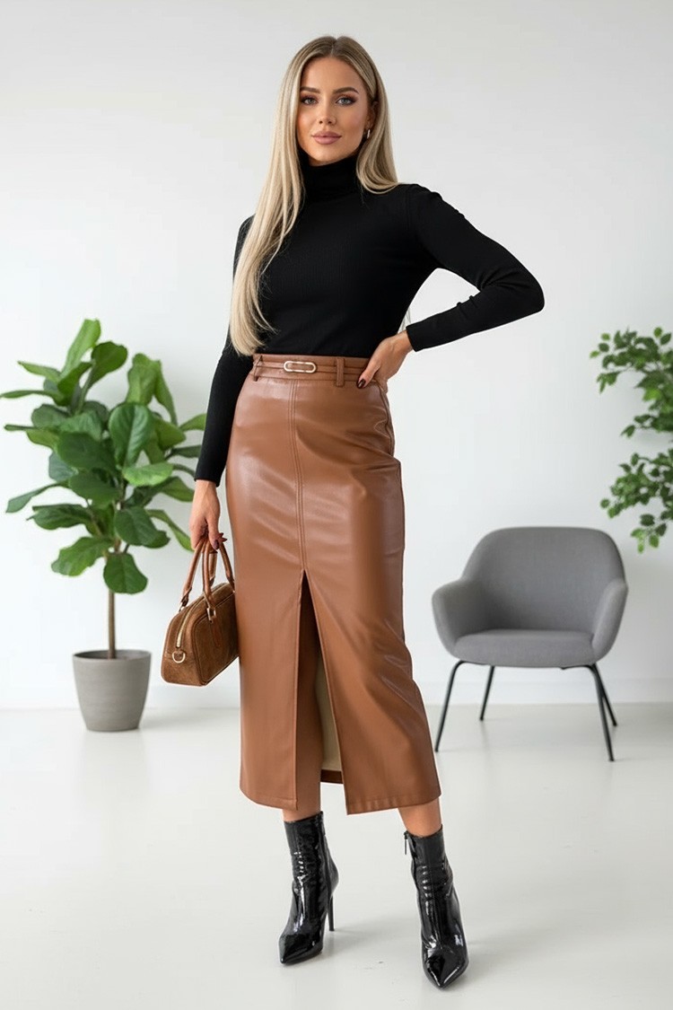 - Aktualny model spódnicy midi, wykonanej z skóry ekologicznej!