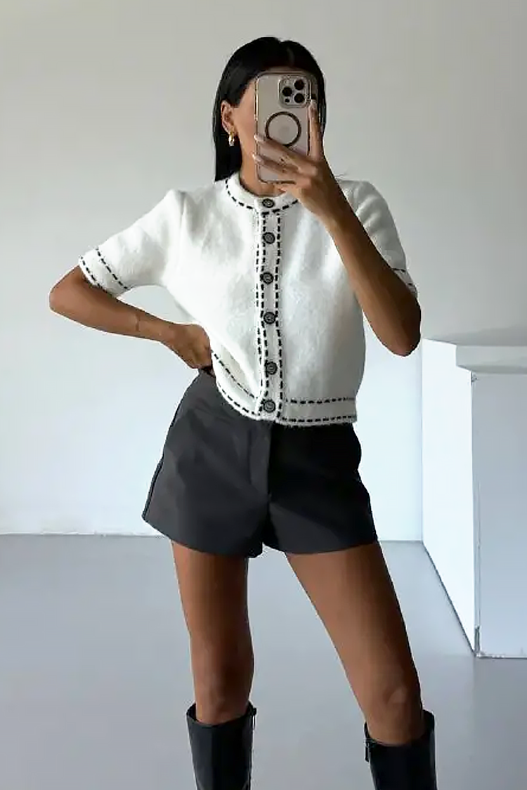 - Miękki i ciepły damski kardigan z krótkimi rękawami, idealny do codziennych, modnych stylizacji.