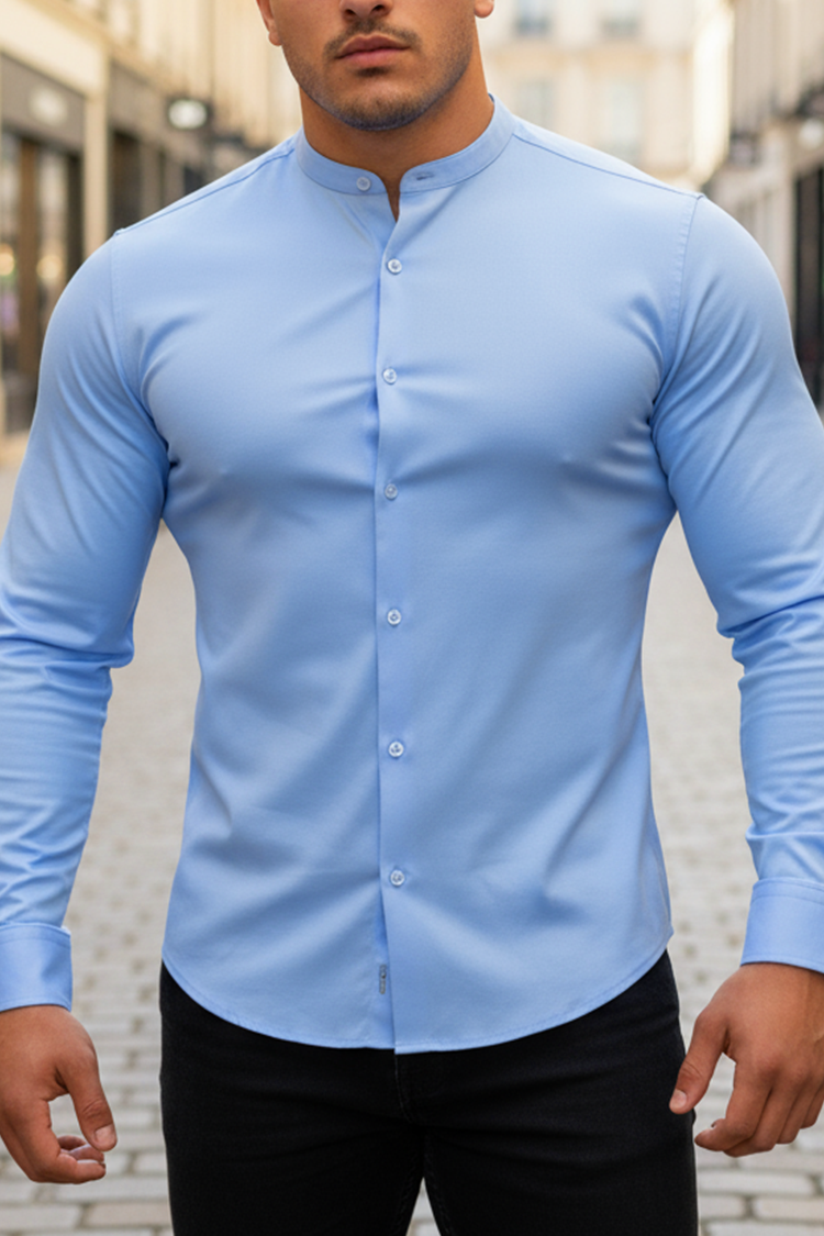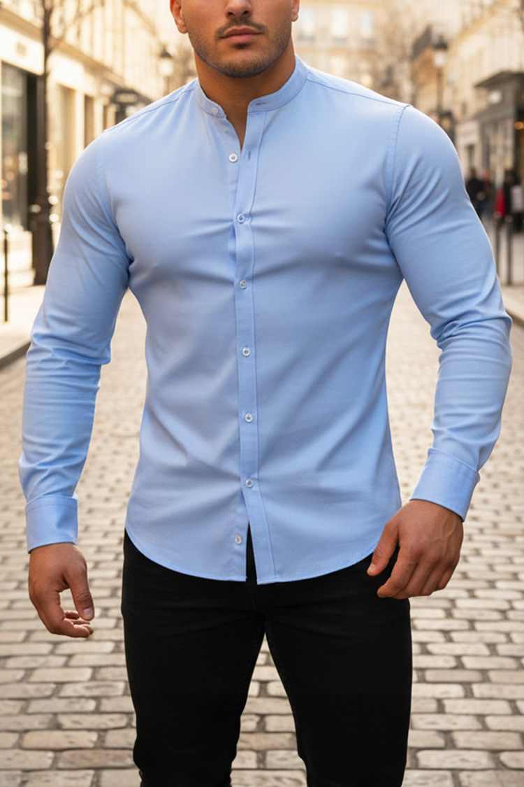 - Elegancka męska koszula o klasycznym wzorze w kolorze jasnoniebieskim, idealna do różnych stylizacji.