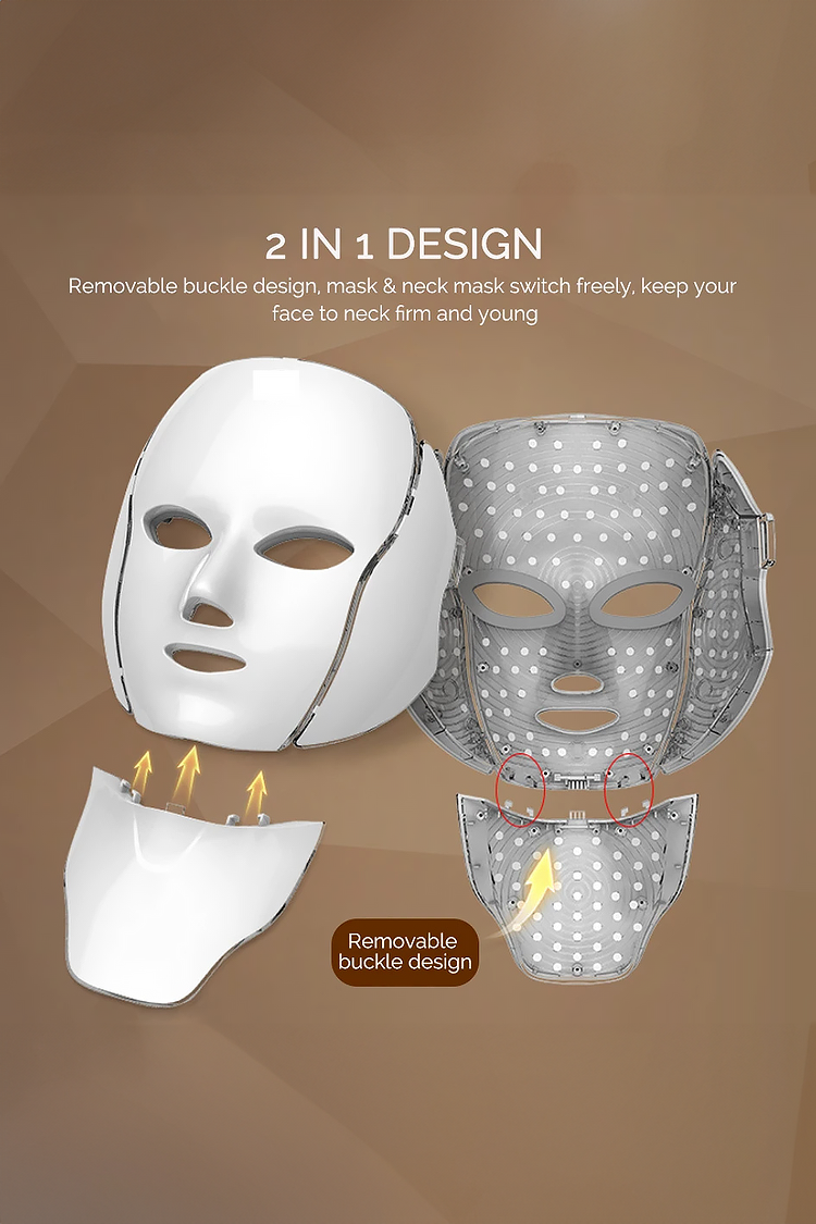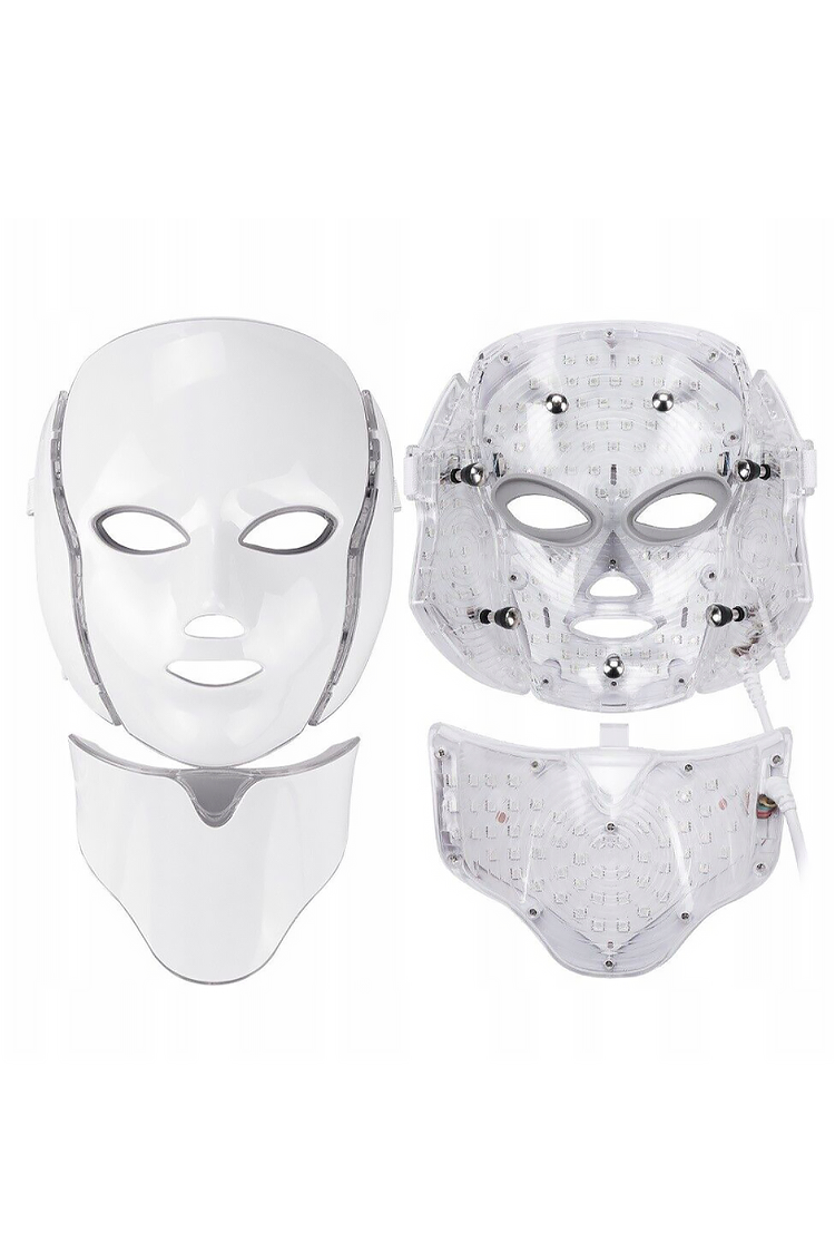 - Multispektralna terapia LED – 7 kolorów światła o różnych korzyściach dla skóry: działanie przeciwstarzeniowe, leczenie trądziku, rozjaśnianie przebarwień i regeneracja komórkowa.