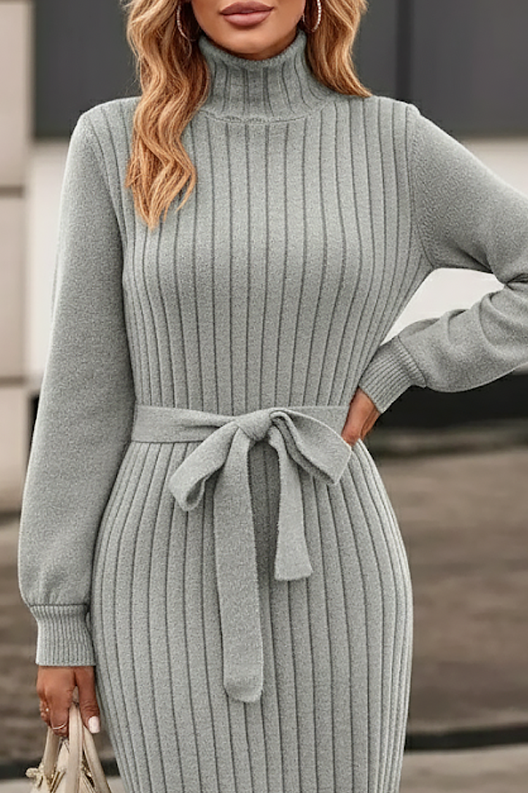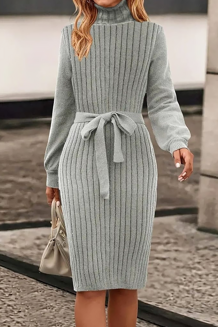 - Sukienka midi w jednolitym kolorze, idealna do różnych stylizacji.