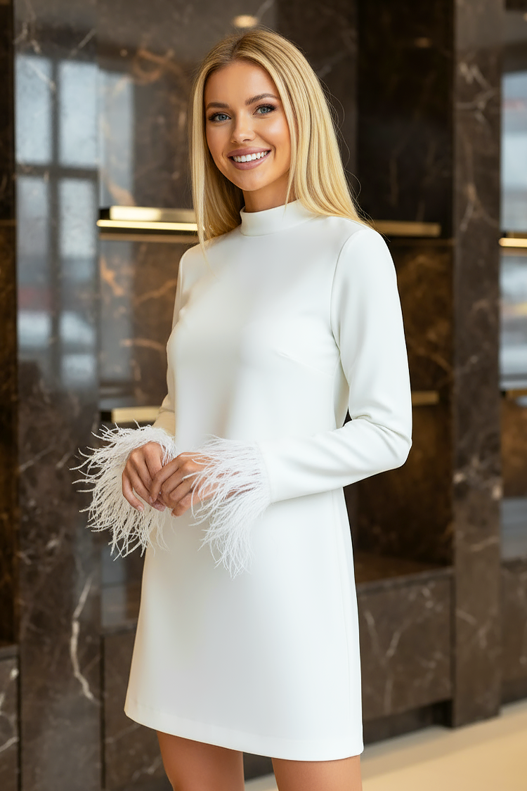 - Stylowa sukienka o efektownym kroju w kolorze białym, idealna na specjalne okazje.