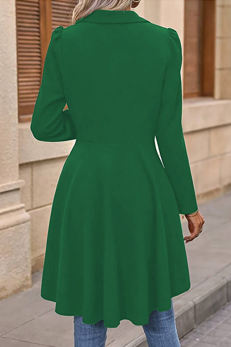 - Model ma asymetryczny i elegancki krój, kołnierzyk i piękny zielony kolor.