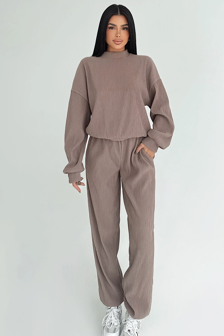 - Modny dwuczęściowy komplet – wygodne spodnie i bluzka, idealny na co dzień.