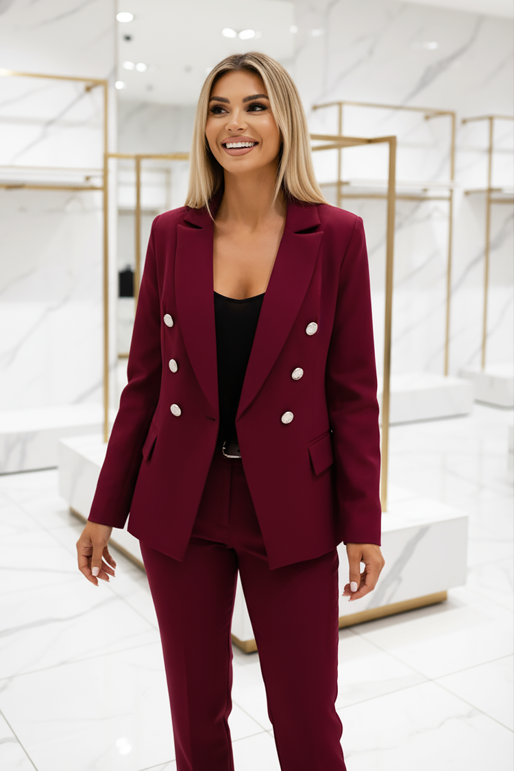 - Komplet składający się z dwóch części w modnym kolorze – spodnie i marynarka, odpowiedni doTwojego stylowego życia na co dzień.