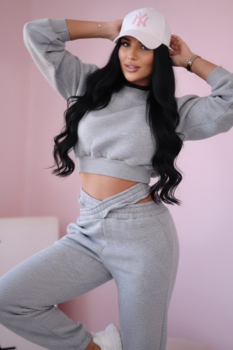 - Praktyczny komplet składający się z dwóch części – spodni i bluzki, odpowiedni na co dzień i do uprawiania sportu.