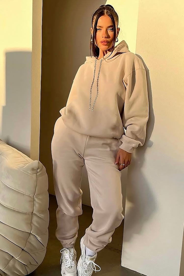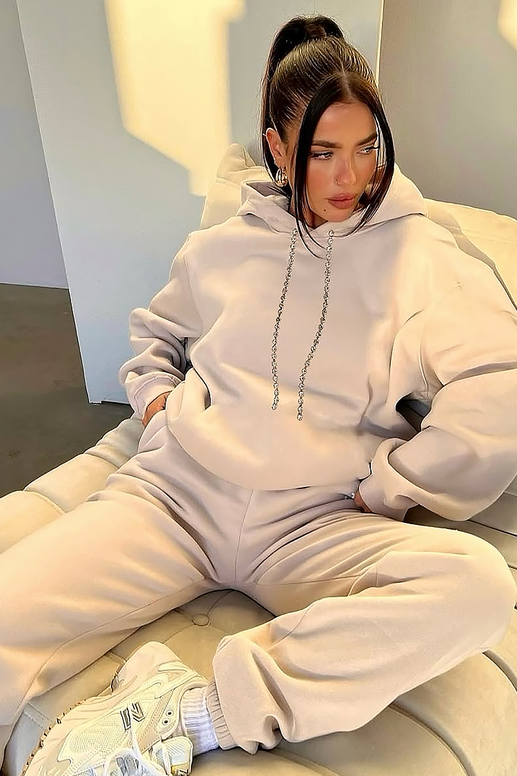 - Atrakcyjny zestaw dwuczęściowy zestaw składający się z bluzy z kapturem i spodni.