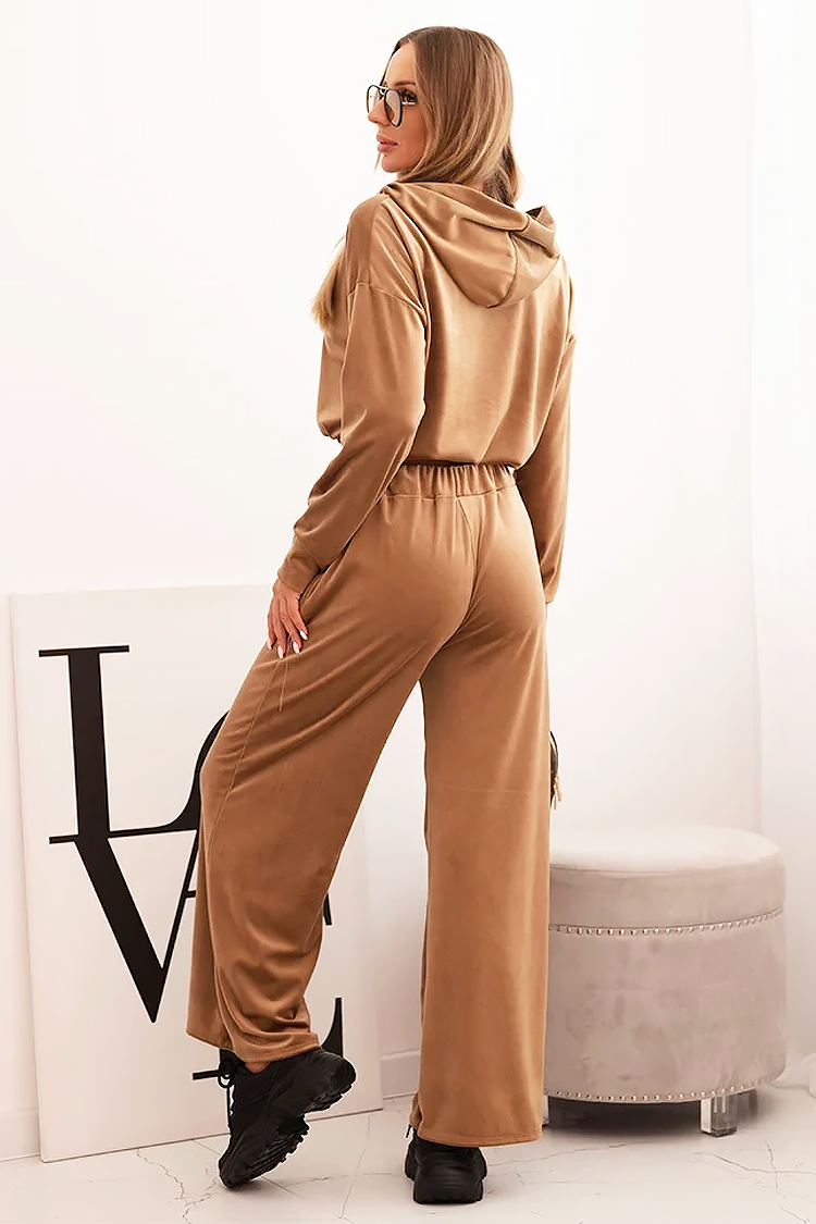 - Zestaw zawiera wygodne spodnie z kieszeniami i wysokim stanem oraz bluzę z kapturem.
