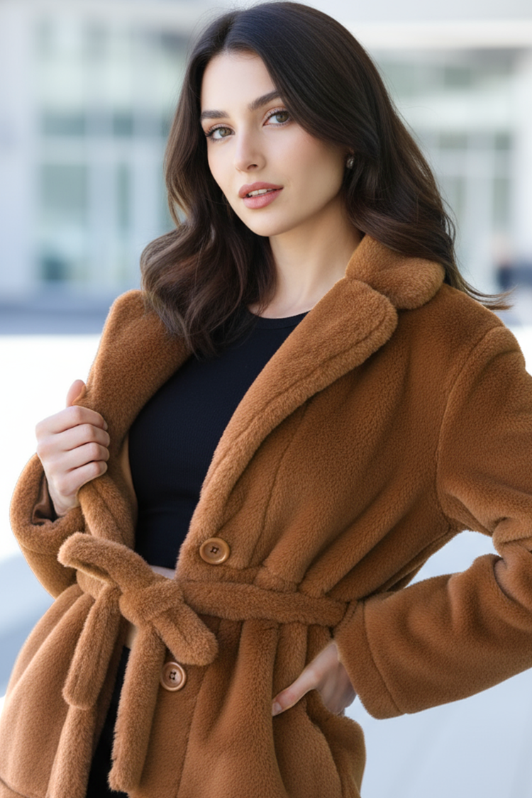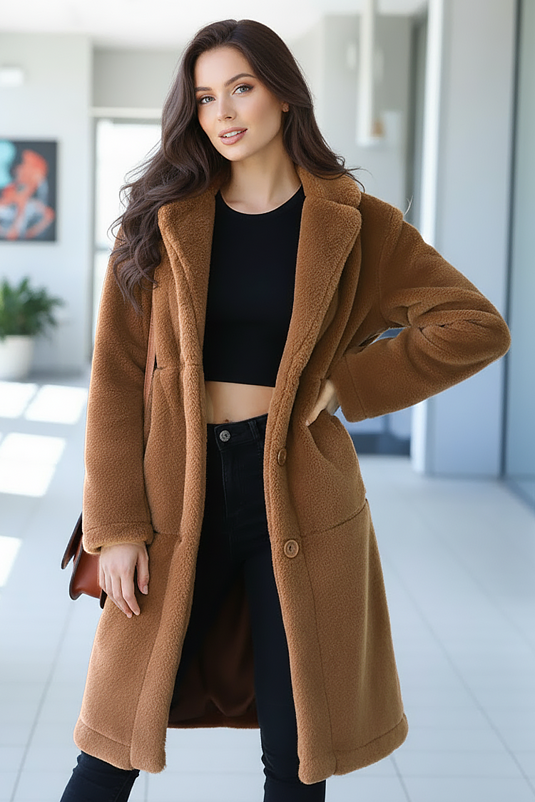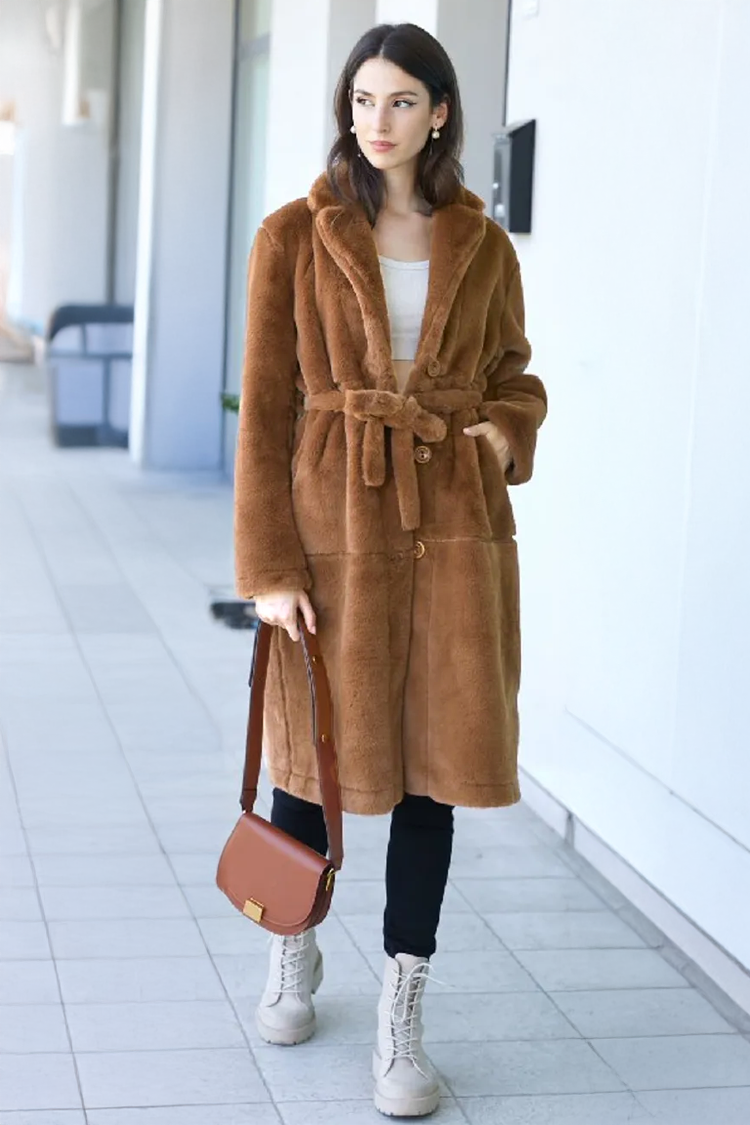 - Dodaj stylu swojej jesienno-zimowej garderobie dzięki puszystemu płaszczowi w klasycznym kolorze.