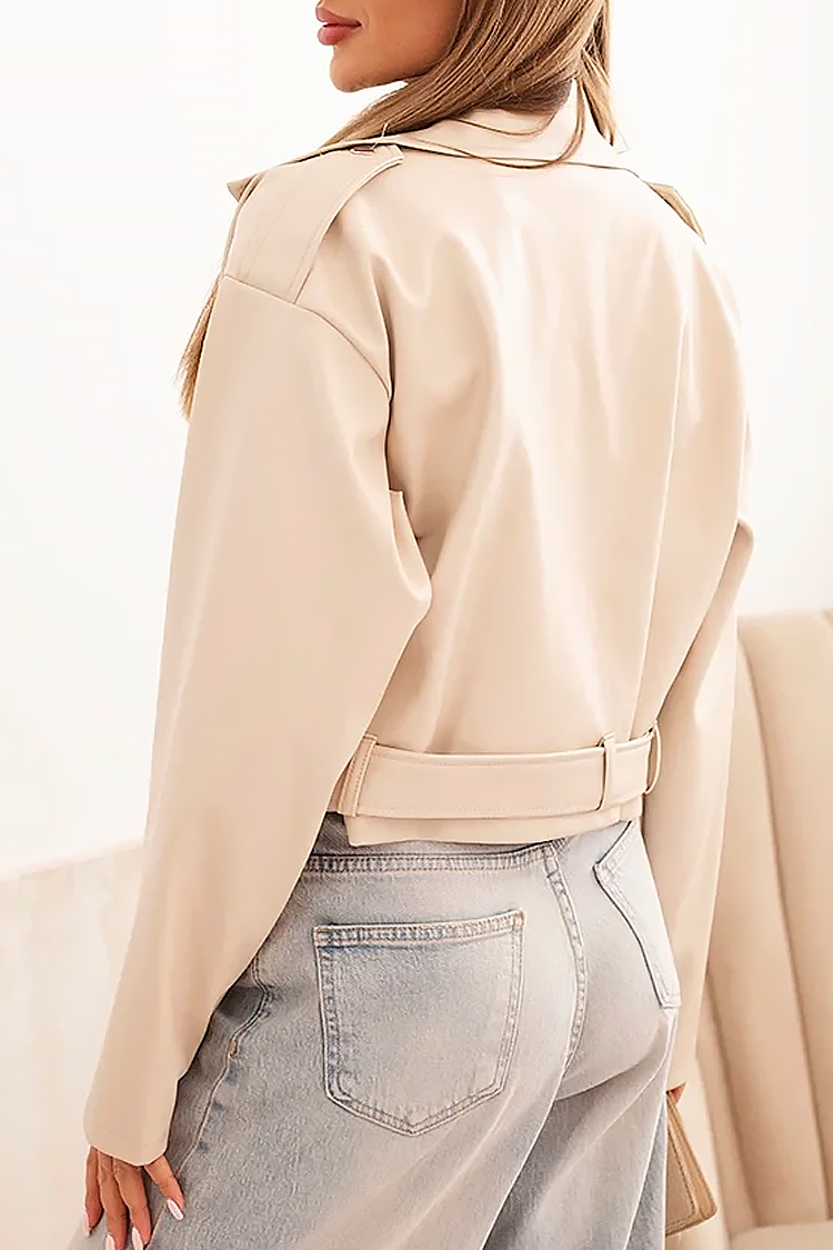 - Model mawygodny krój, stylowy kołnierz, zapięcie na zamek błyskawiczny i pasek z tego samego materiału.