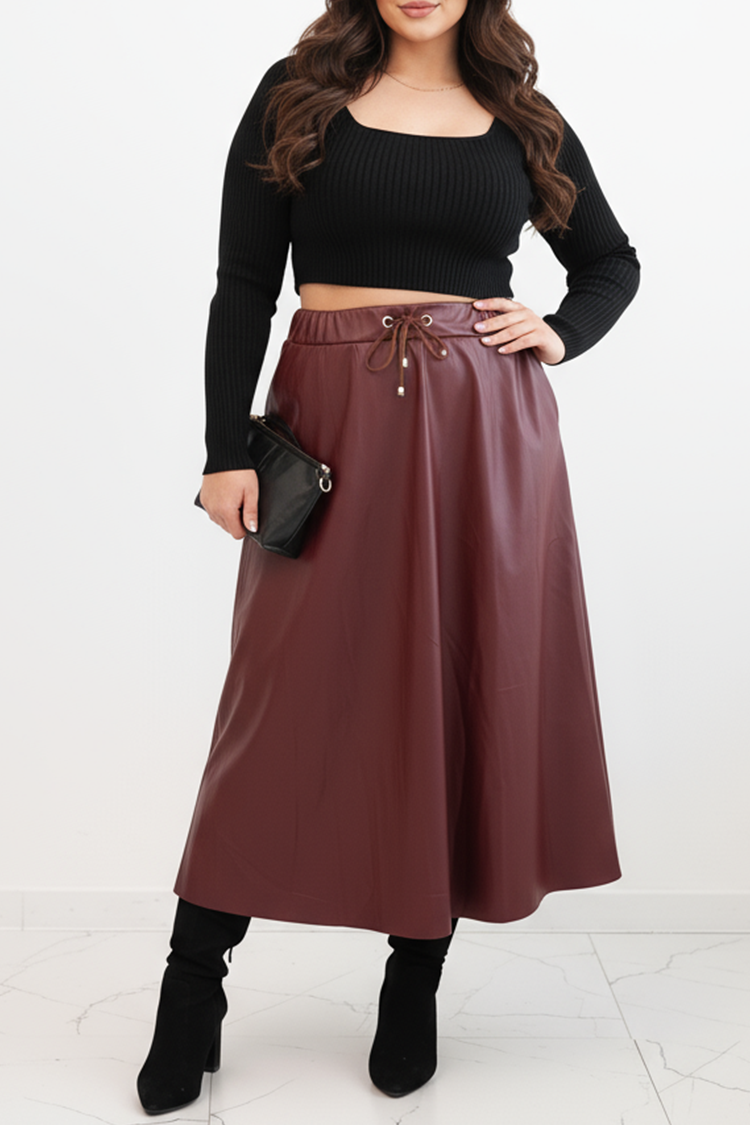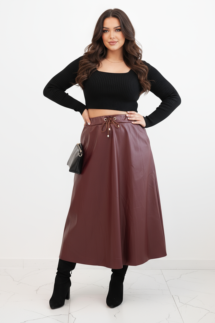 - Aktualny model spódnicy midi, wykonanej z ekoskóry, idealnej na co dzień.