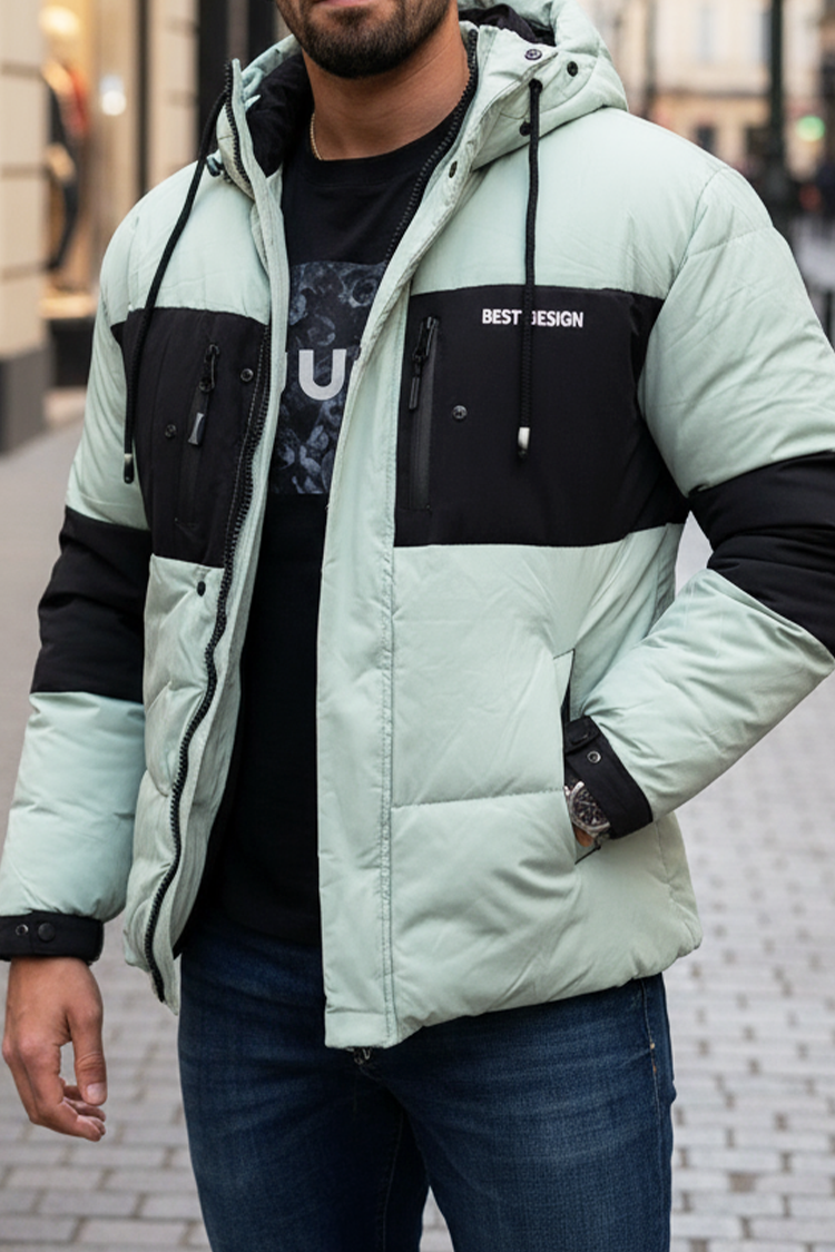 - Stylowa i ciepła męska kurtka zimowa, łącząca wygodę z nowoczesnym, miejskim designem.