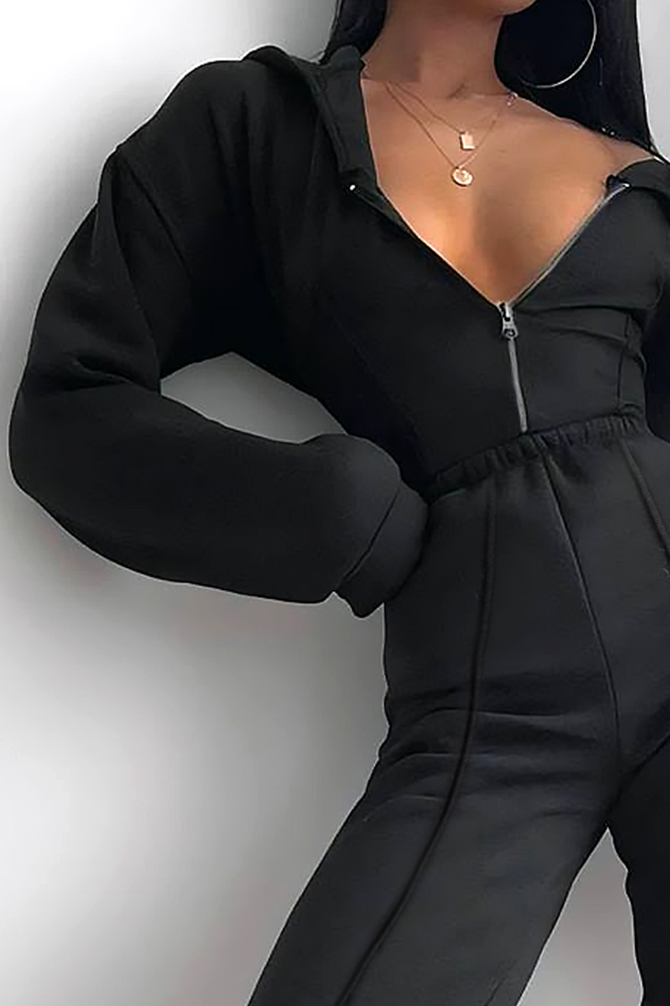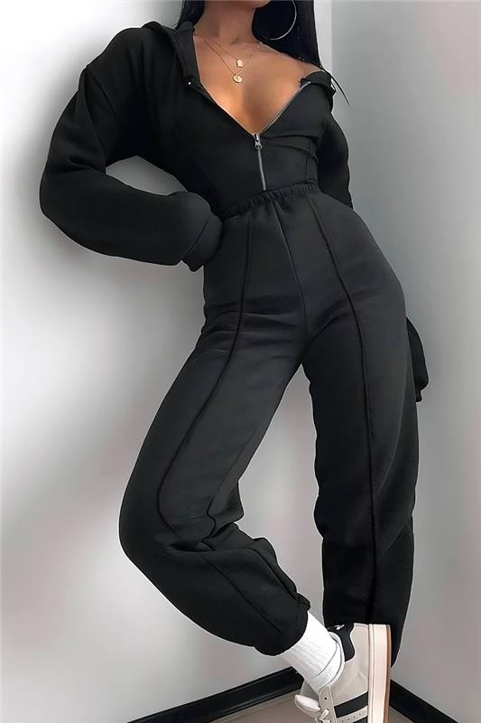 - Damski kombinezon w jednolitym kolorze i efektownym zapięciem, odpowiedni na co dzień.