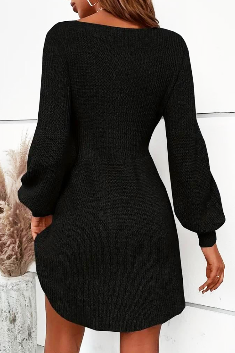 - Sukienka ma wygodny krój, szeroki dekolt i długie rękawy.