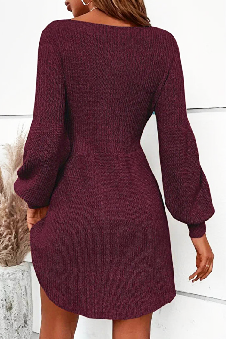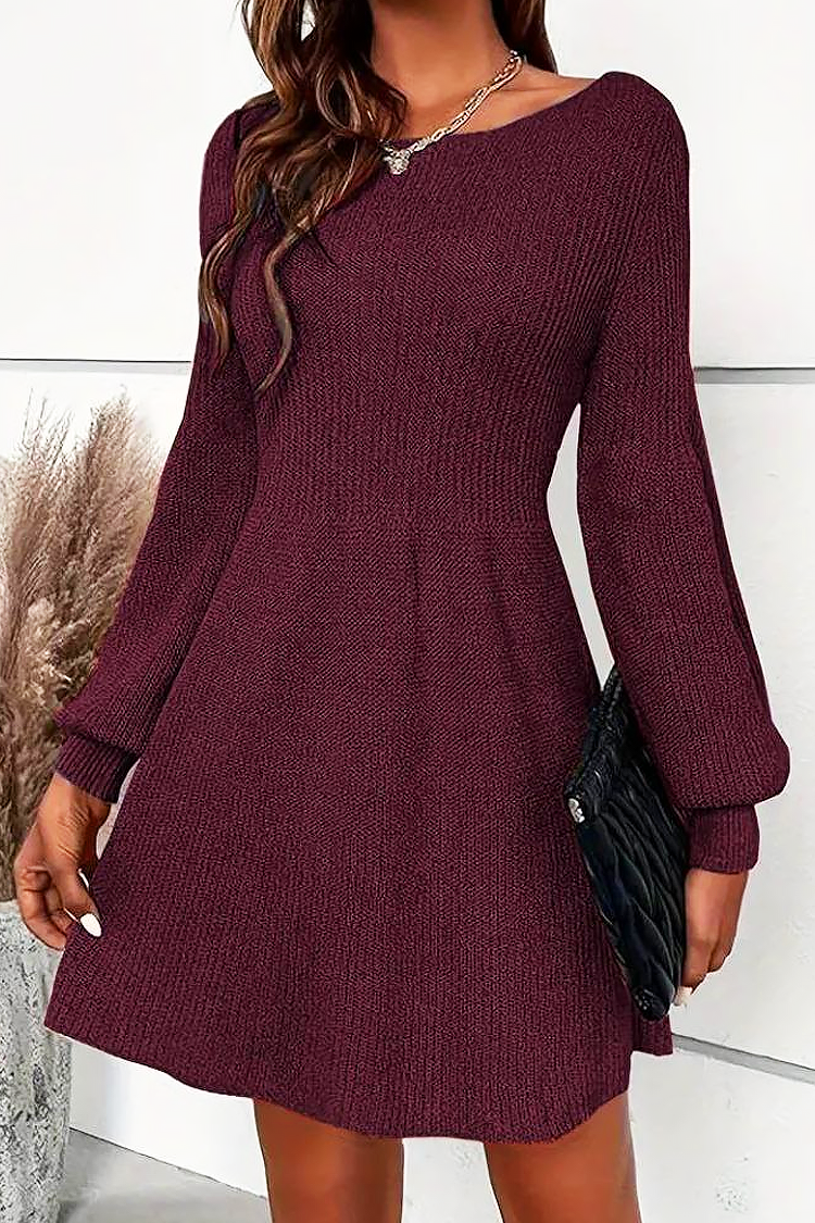 - Sukienka ma wygodny krój, szeroki dekolt i długie rękawy.
