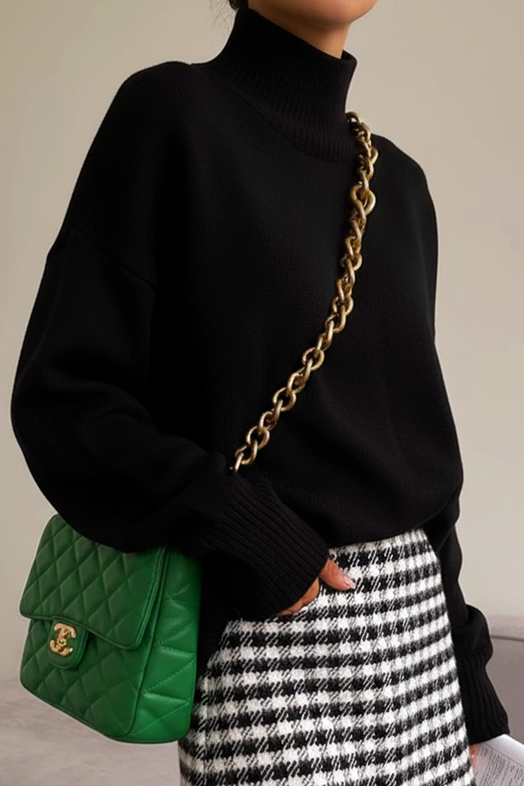 - Luźny krój, pasujący do każdej sylwetki, z wysokim kołnierzem.
