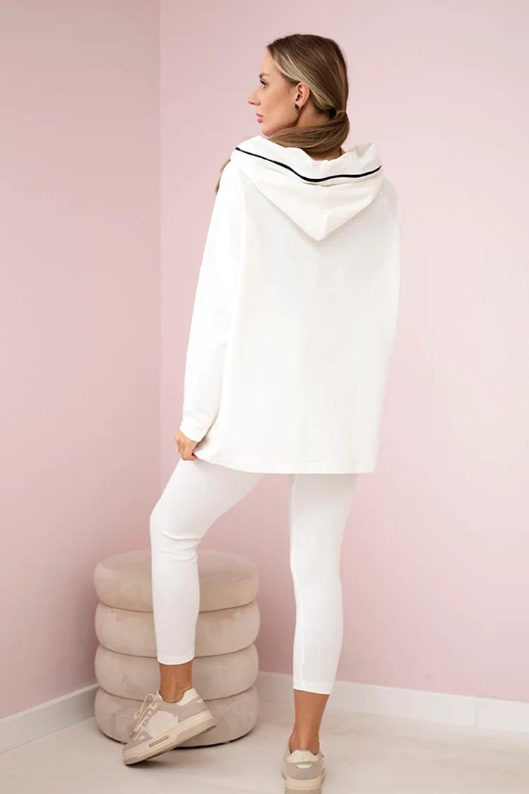 - Bluza ma długie rękawy, luźny krój i kaptur z zamkiem błyskawicznym, a legginsy mają gumkę i wysoki stan.