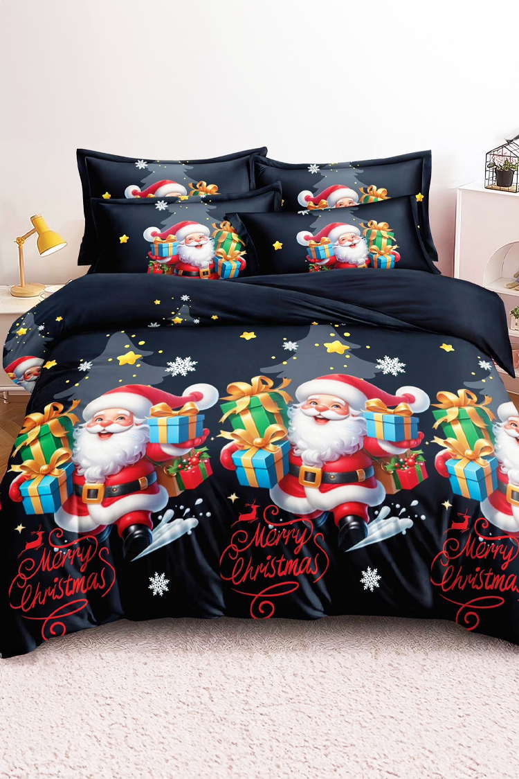 - Czteroczęściowy komplet pościeli świątecznej o wymiarach 200x220 cm, wykonany z wysokiej jakości satyny bawełnianej.