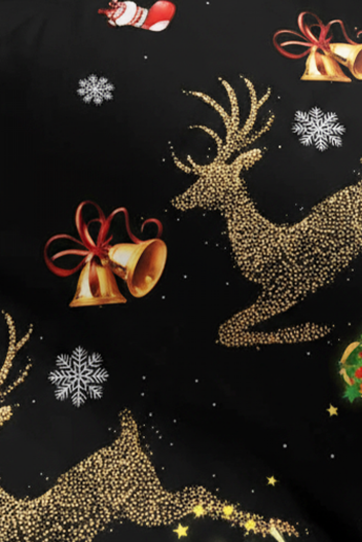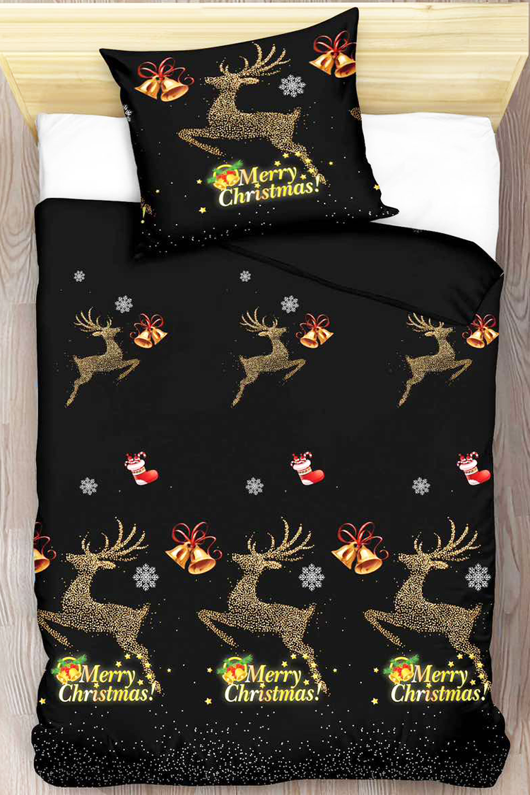 - Dwuczęściowy komplet pościeli o wymiarach 140x200 cm, wykonany z wysokiej jakości satyny bawełnianej z motywami świątecznymi.