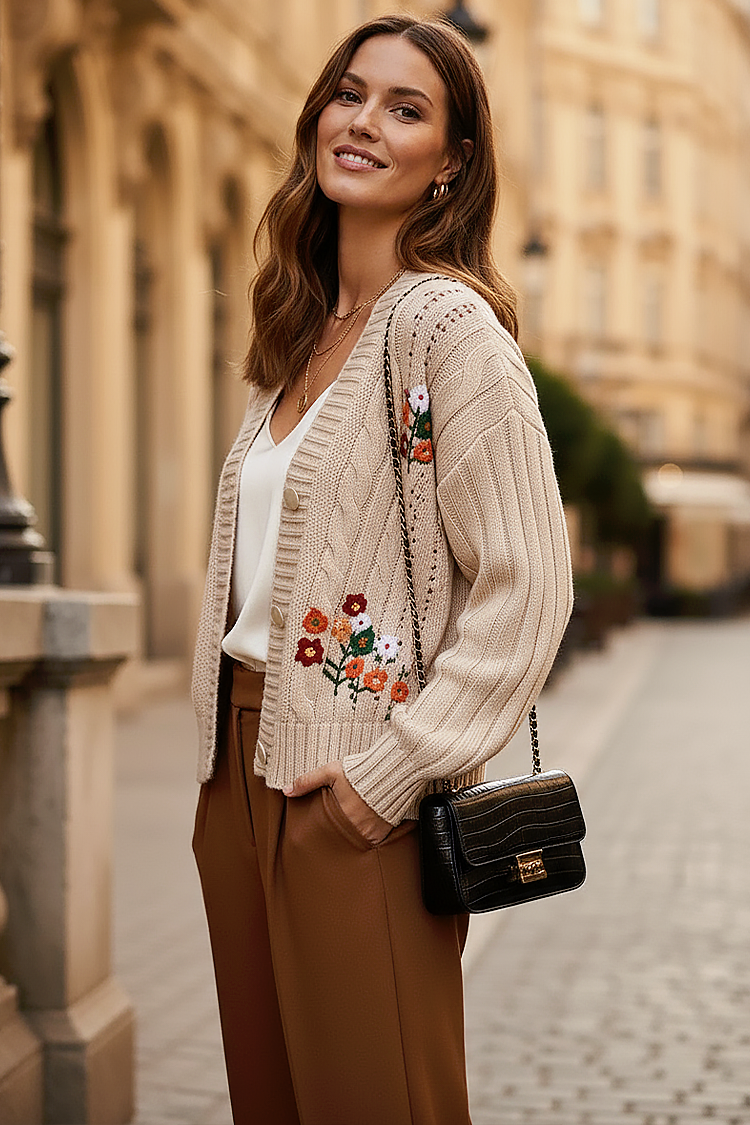 - Miękki i ciepły damski kardigan o luźnym kroju i wygodnym fasonie, idealny na co dzień.