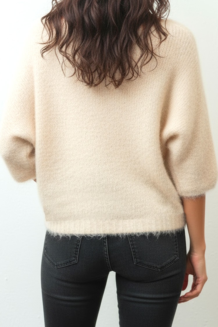 - Miękki, klasyczny sweter damski w kolorze ecru, idealny do noszenia na co dzień.