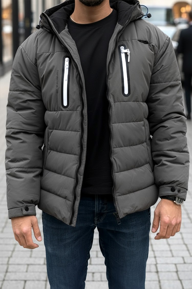 - Stylowa i ciepła męska kurtka zimowa, łącząca wygodę z nowoczesnym, miejskim designem.
