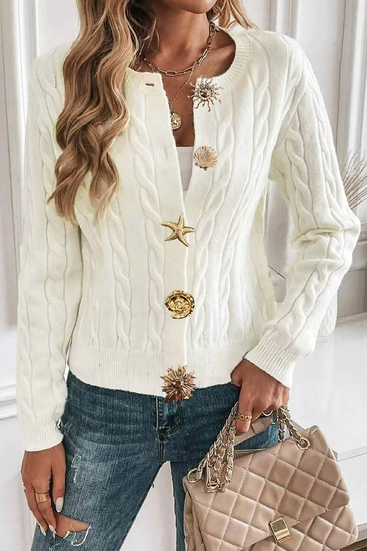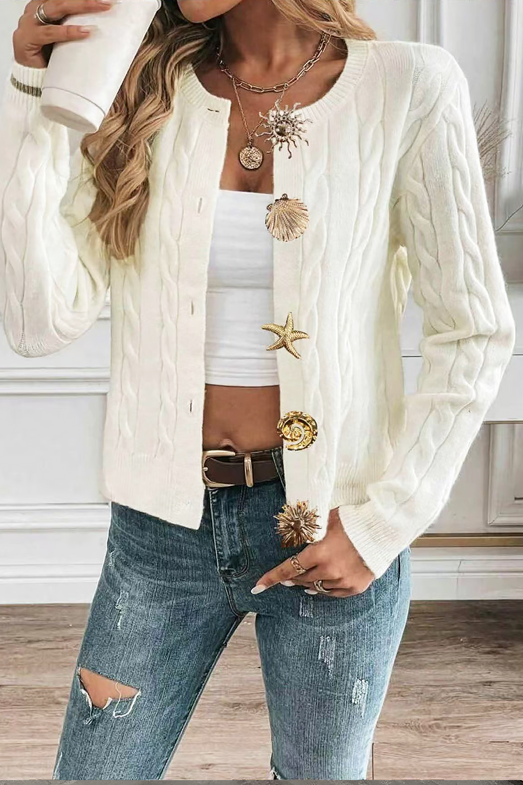 - Damski kardigan w jednolitym kolorze, idealny do jesiennych stylizacji.
