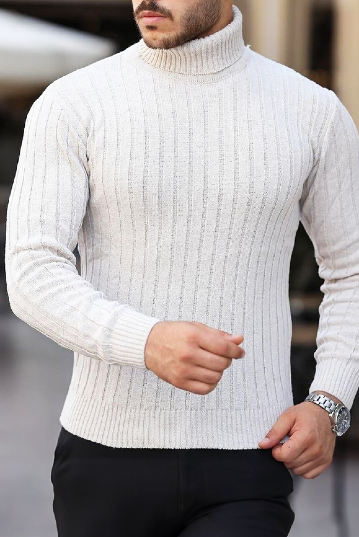 - Wygodny i prosty męski sweter typu golf i jednolitym wzorem.