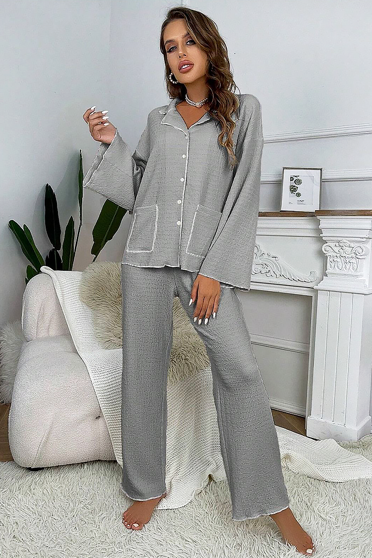 - Wygodna dwuczęściowa piżama damska, gwarantująca domowy komfort.