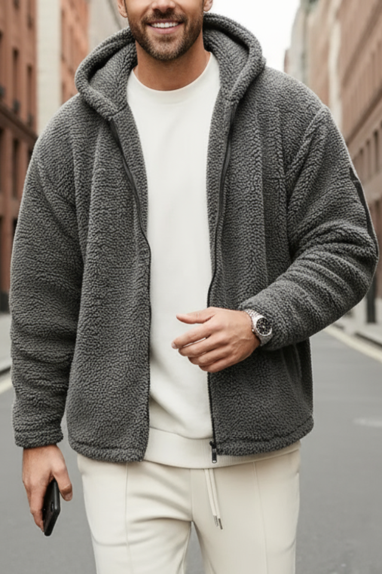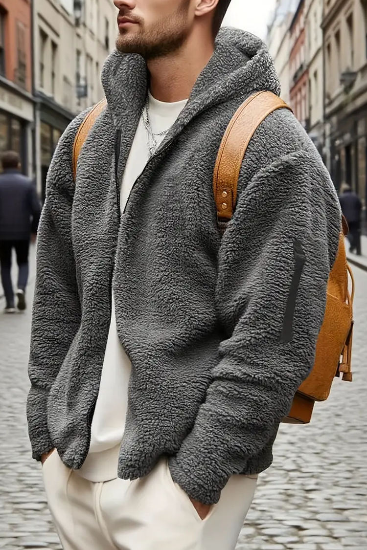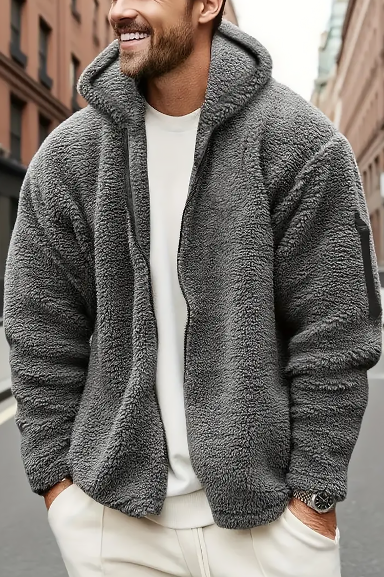 - Praktyczna męska bluza z kieszeniami w kolorze grafitowym, idealna na co dzień lub na spacer.