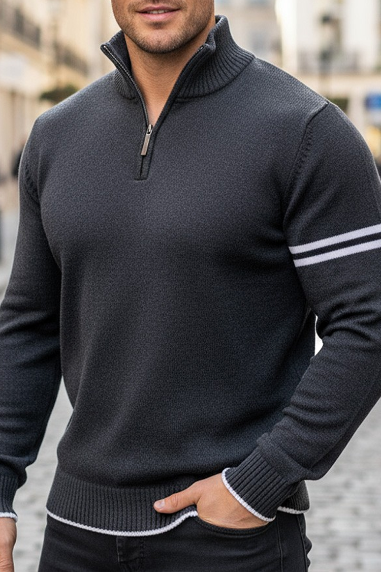 - Nowoczesny męski sweter z kołnierzykiem i zamkiem błyskawicznym, idealny jako dodatek do codziennej stylizacji.
