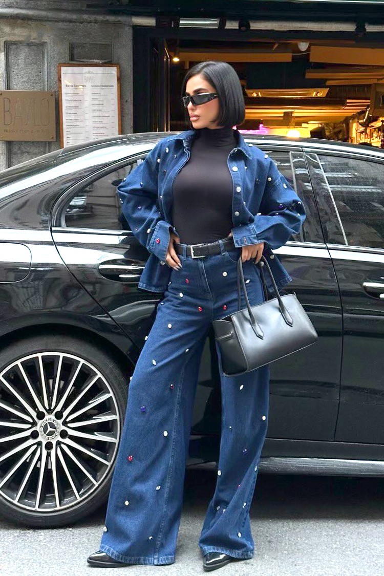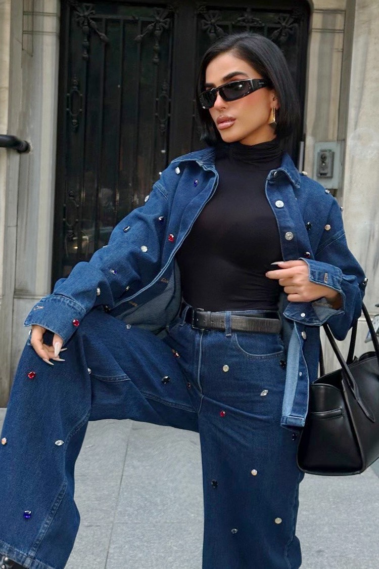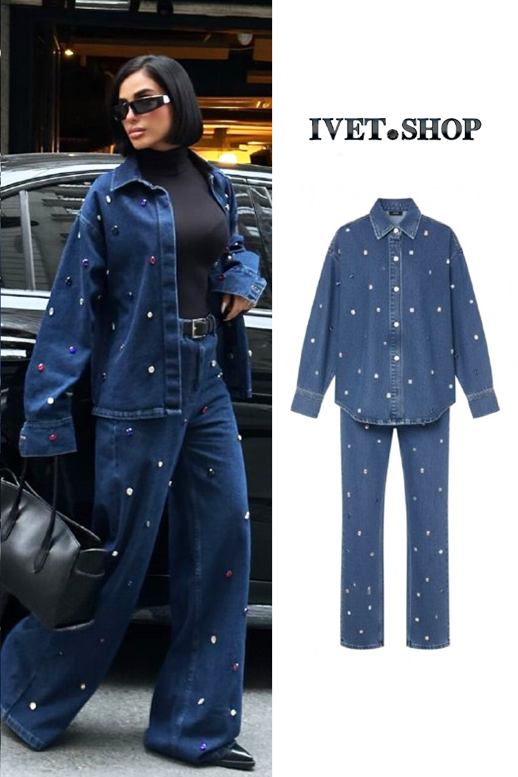 - Damski dwuczęściowy zestaw jeansowy, idealny na co dzień.