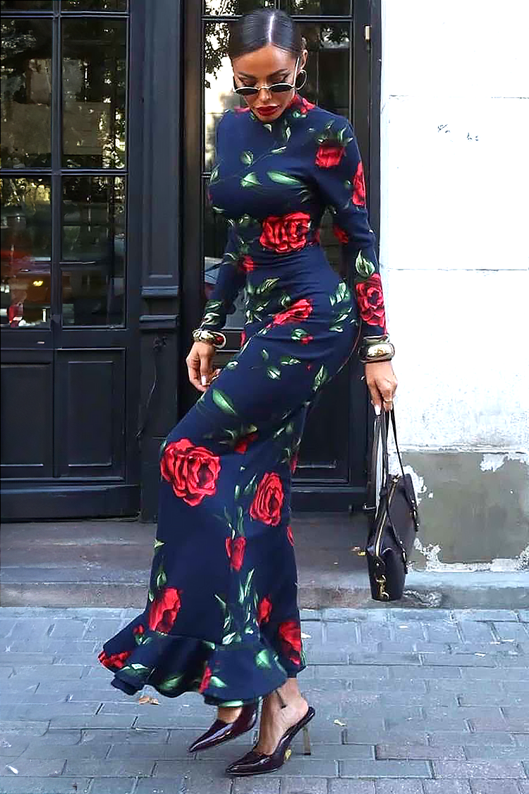 - Jeśli zależy Ci na eleganckim wyglądzie, postaw na tę długą sukienkę z atrakcyjnym wzorem.