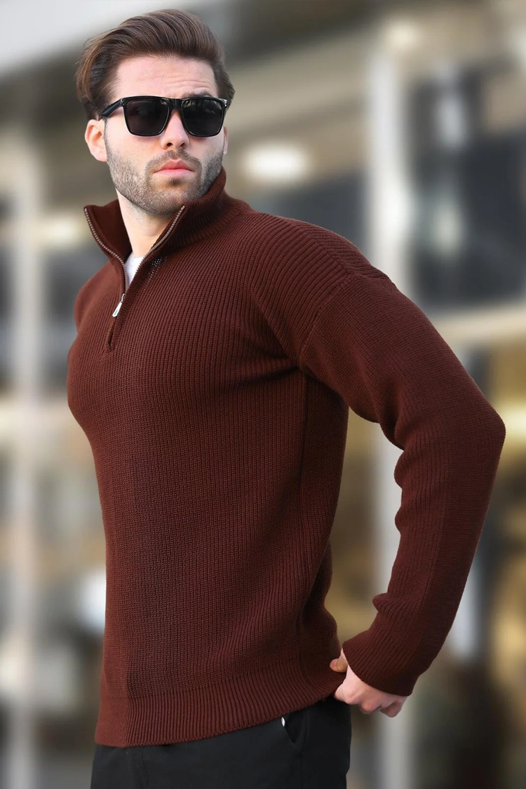 - Nowoczesny męski sweter z kołnierzykiem polo i zamkiem błyskawicznym, idealny jako dodatek do codziennych stylizacji.